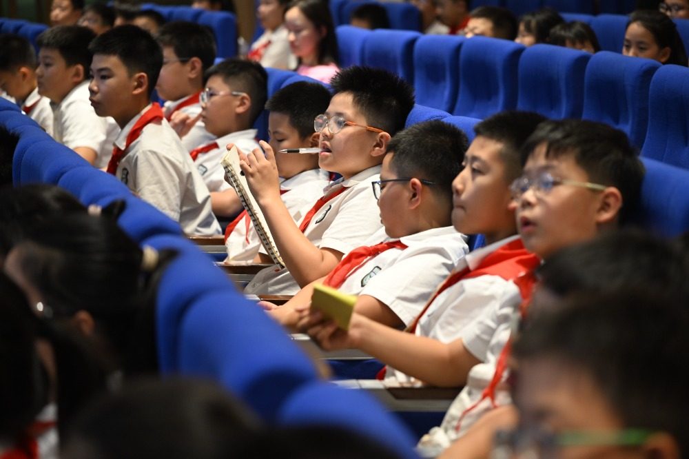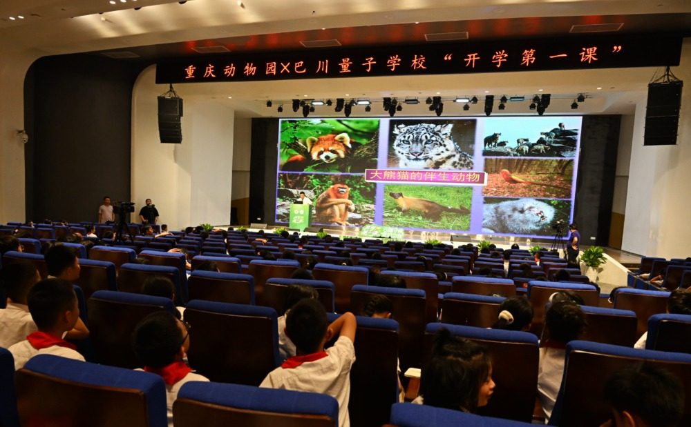 ▲9月1日,重庆江北巴川量子学校,学生们认真聆听重庆市动物园大熊猫技术主管、正高级畜牧师尹彦强博士带来的“国宝大师课”。记者 崔力 摄