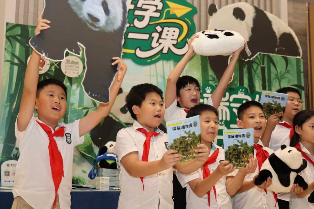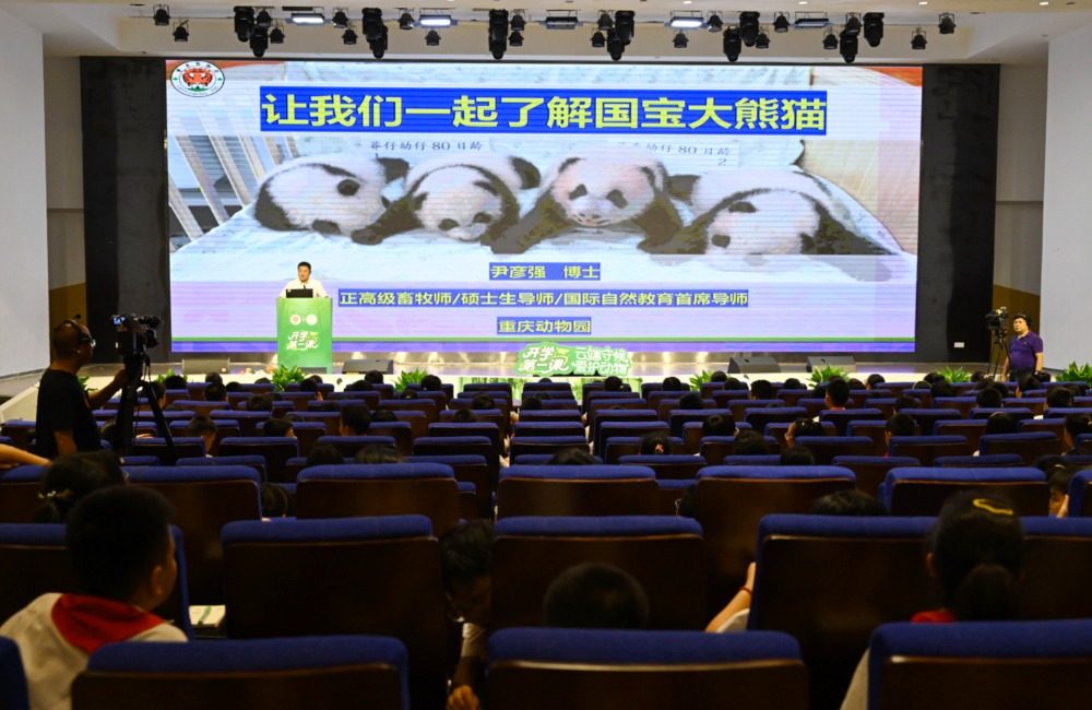 ▲9月1日,重庆江北巴川量子学校,重庆市动物园大熊猫技术主管、正高级畜牧师尹彦强博士为孩子们带来一堂别开生面的“国宝大师课”。记者 崔力 摄